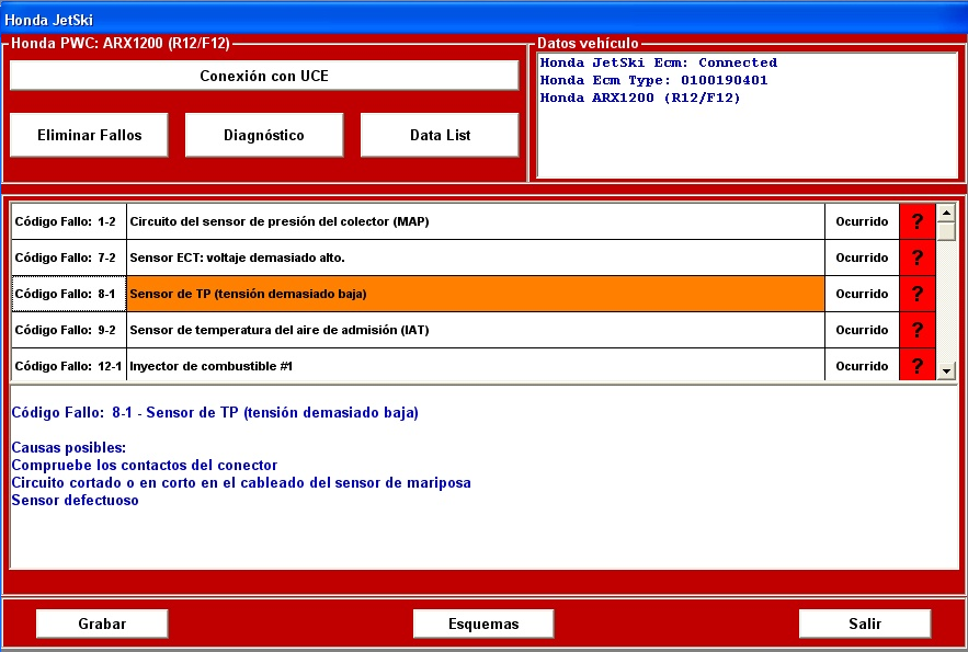 Pantallas de ScanSea con ecm´s reales: * Las pantallas pueden ser de versiones de software antiguas. SeaDoo Carburacion SeaDoo Carburacion Tune Honda Fallos SeaDoo Grafica Horas SeaDoo 300 Mantenimiento SeaDoo Llaves SeaDoo Configuracion Kawasaki 12F Esquemas SeaDoo DI fallo P1103 Videos: Visite nuestro canal de Youtube